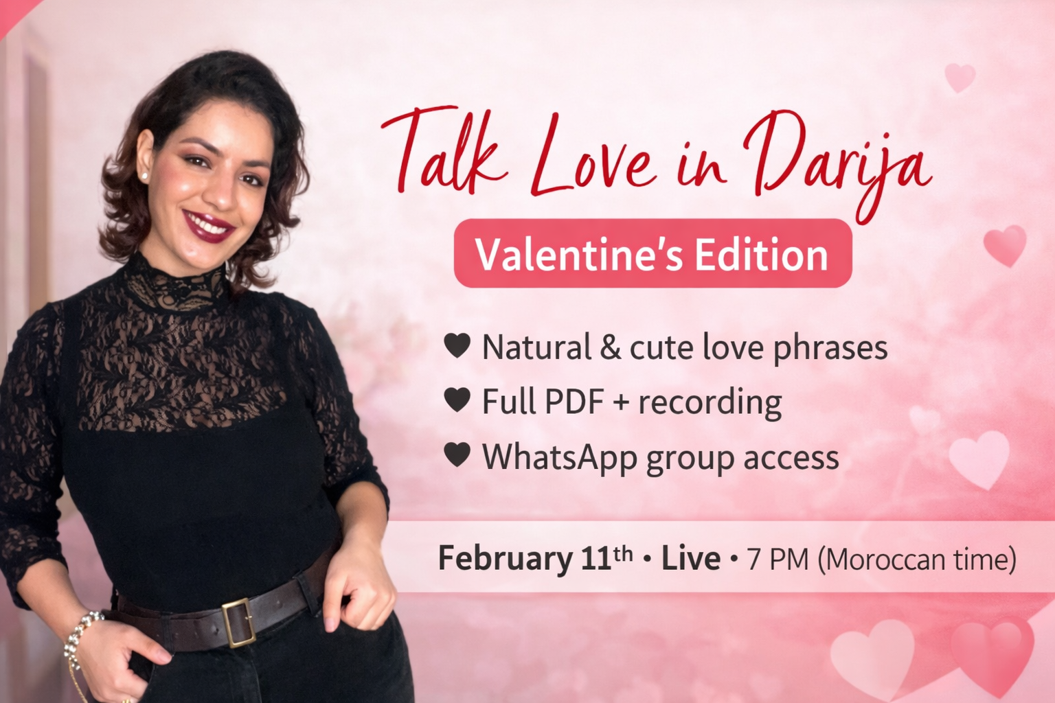 One of life’s most beautiful feelings is expressing love through words and actions. I feel truly privileged to help others express their love in Darija to their partners and be part of those special moments. It fills me with gratitude and joy to support people in connecting, falling deeper in love, and surprising their loved ones.